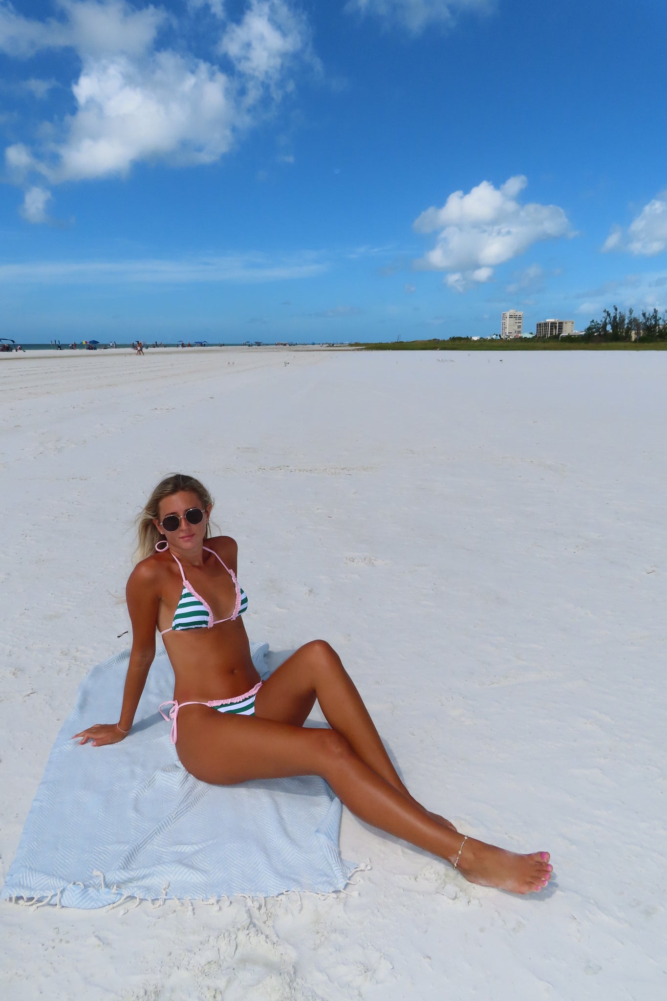 Sun-kissed and playful, our Sharpay Bikini Set is your go-to suit for a picture-perfect pool day. Featuring bold green and white stripes with sweet pink ruffle trim and dainty tie details, this set brings the perfect mix of flirty and fun. The triangle top offers adjustable coverage and the matching bottoms tie at the sides for a customizable fit. Whether you’re lounging poolside or catching waves, this bikini is made to stand out.