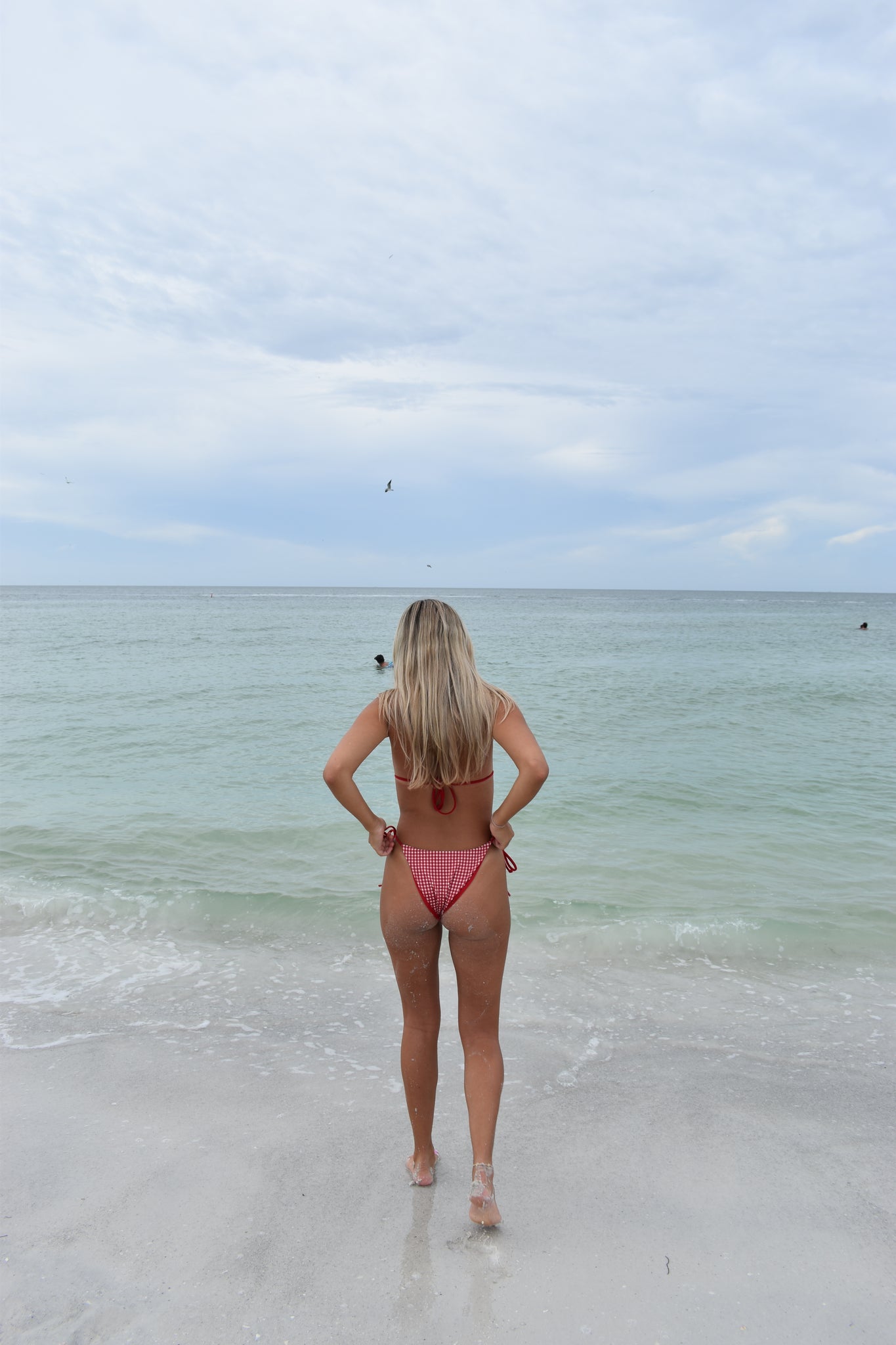Turn heads this summer in our Strawberry Sunset Gingham Bikini Set! This ultra-flattering red and white gingham bikini features a classic triangle top with adjustable neck and back ties, finished with dainty red bow accents for a flirty touch. The matching tie-side bottoms offer a cheeky fit and custom comfort, perfect for tanning or taking a dip. Made with soft, stretchy fabric that hugs in all the right places. Whether you’re poolside or beach-bound, this bikini is a sweet summer essential.