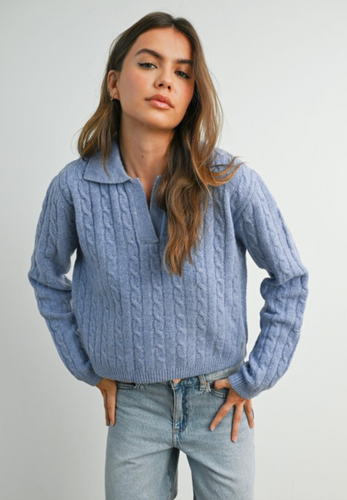 Grey Cable Knit Sweater – Cozy Cropped Pullover