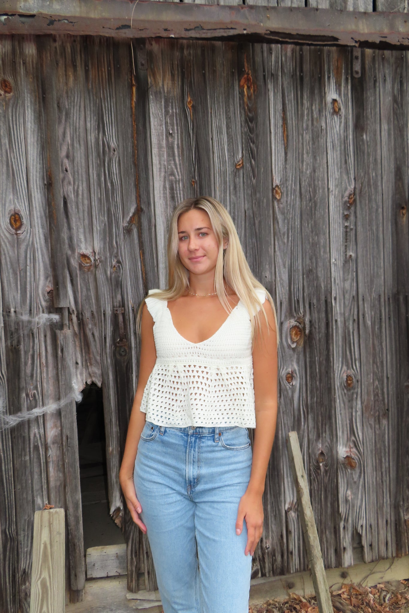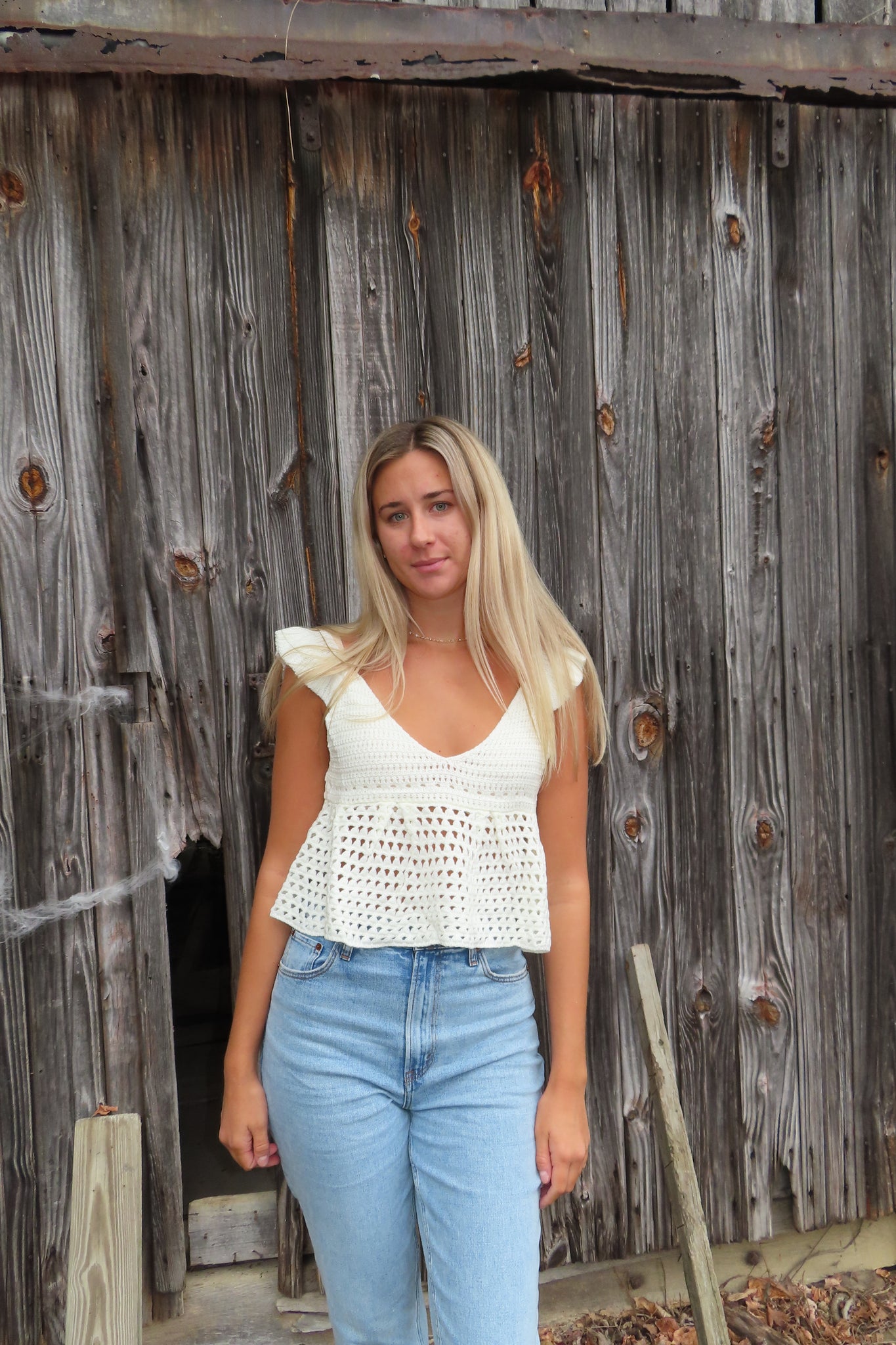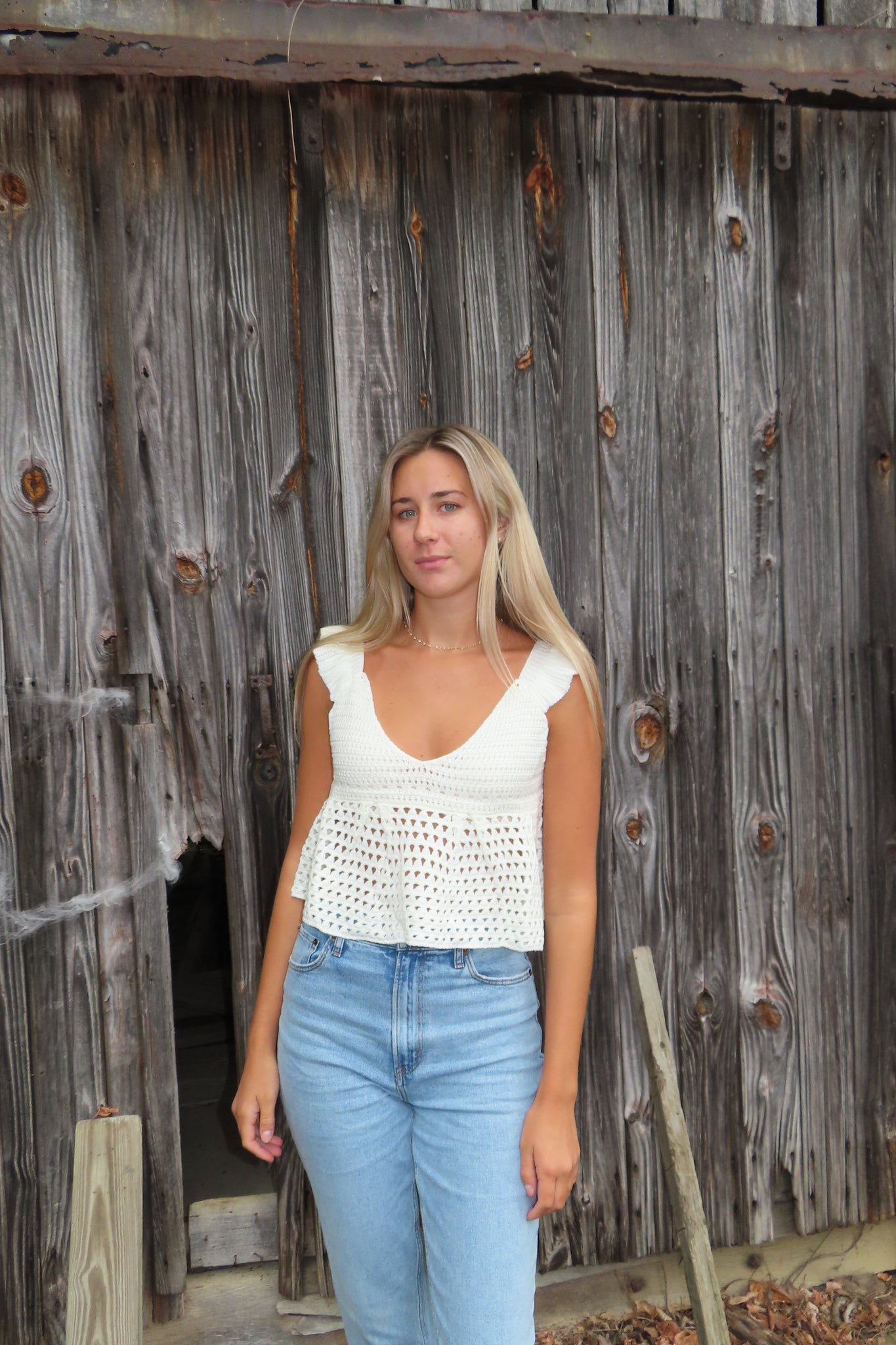 Effortlessly boho and beautifully detailed — our Seaside Serenity Crochet Top brings laid-back charm to any look. Featuring a soft knit crochet design with flutter sleeves, a flattering v-neckline, and an adjustable open-back tie, this top is made for sunny days and golden hour moments. Pair it with high-waisted denim or a flowy maxi skirt for that perfect coastal-cowgirl vibe.