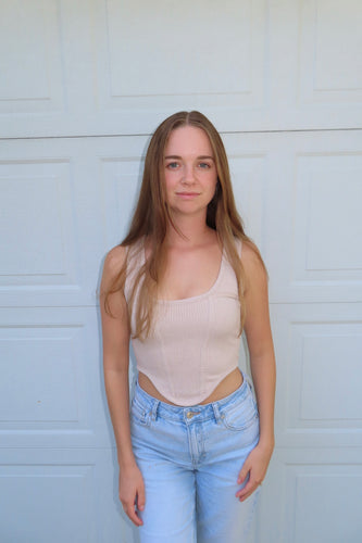 Beige Ribbed Corset Tank Top | Trendy Fitted Crop Top