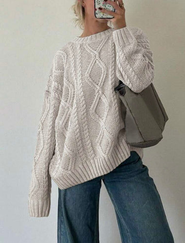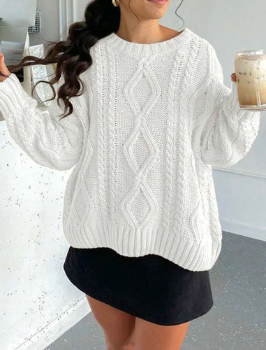 Cozy White Cable Knit Sweater – Oversized Chunky Knit Pullover