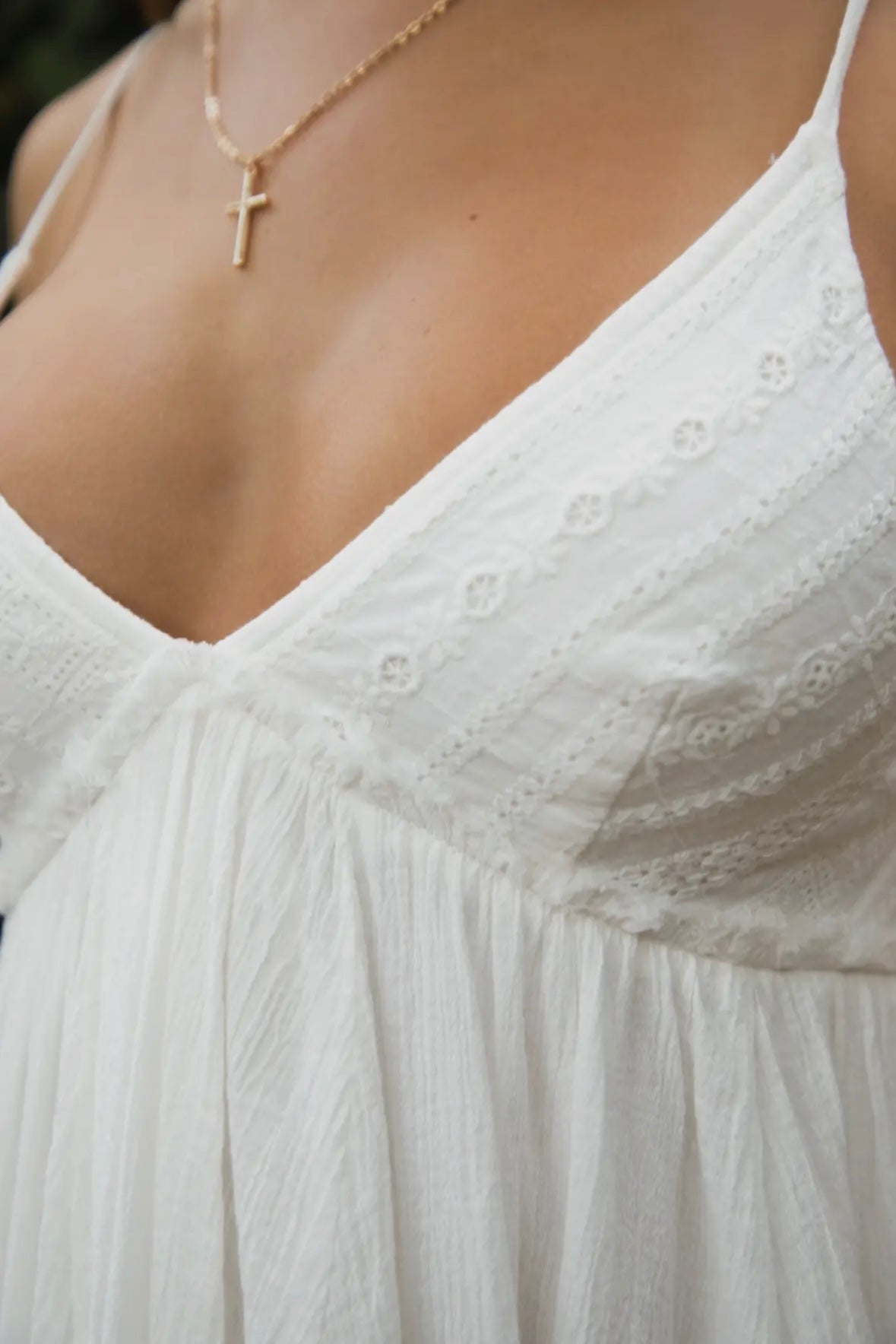 - V-neckline with adjustable spaghetti straps